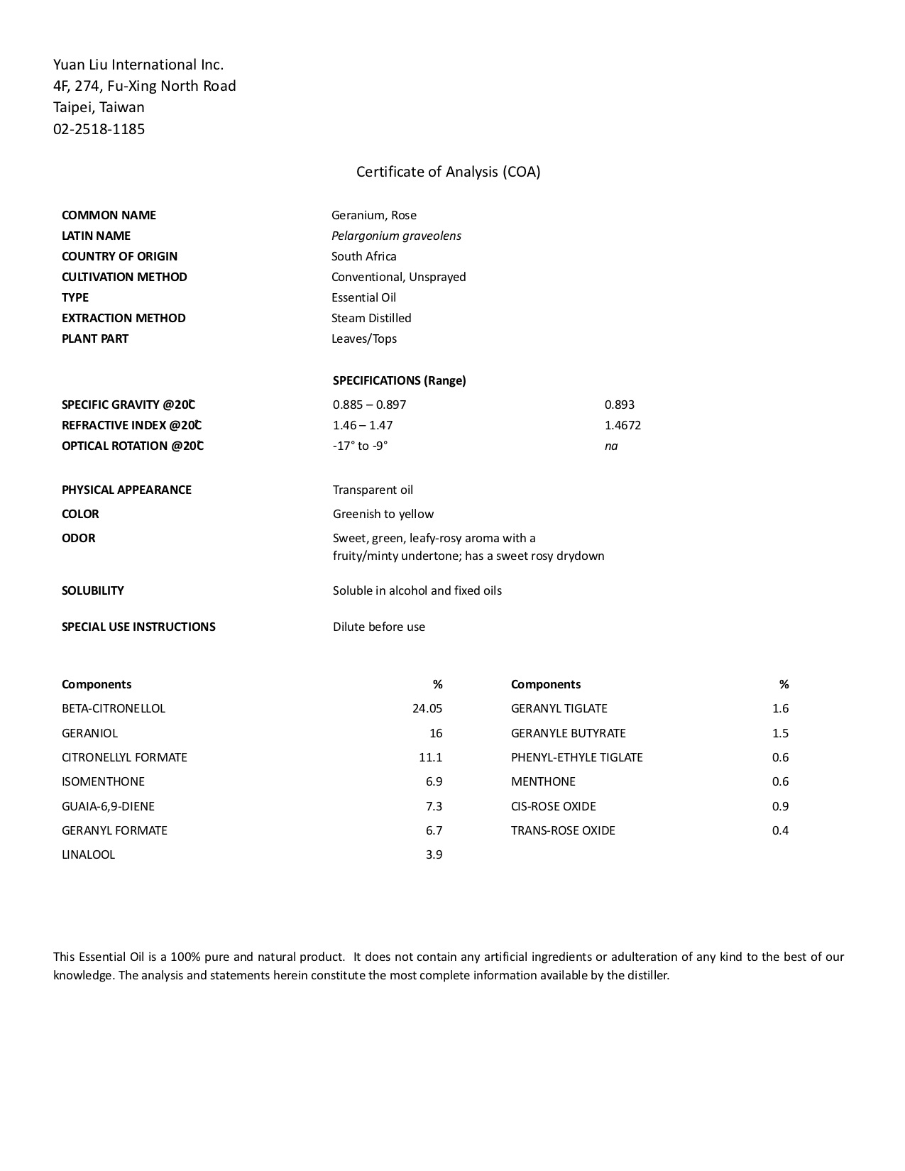 萃取方式:蒸氣蒸餾 Steam Distilled
