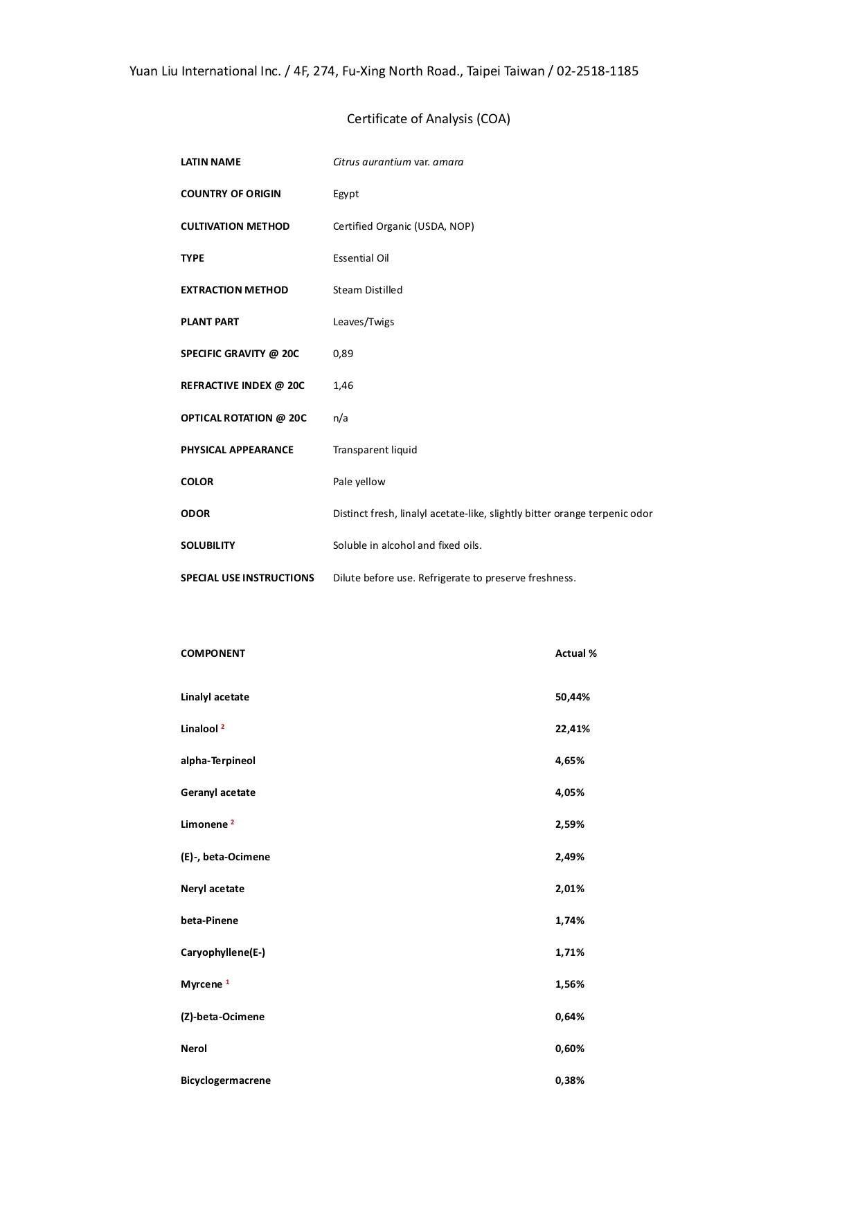 萃取方式:蒸氣蒸餾 Steam Distilled